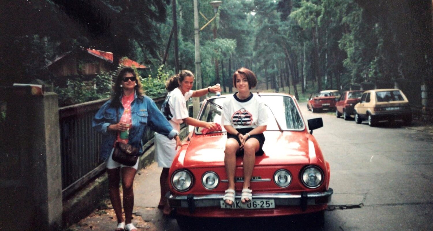 „Na fotografii je mámina a tetina kamarádka se svou dcerou a další kamarádkou. Plzeň, 90. léta.“