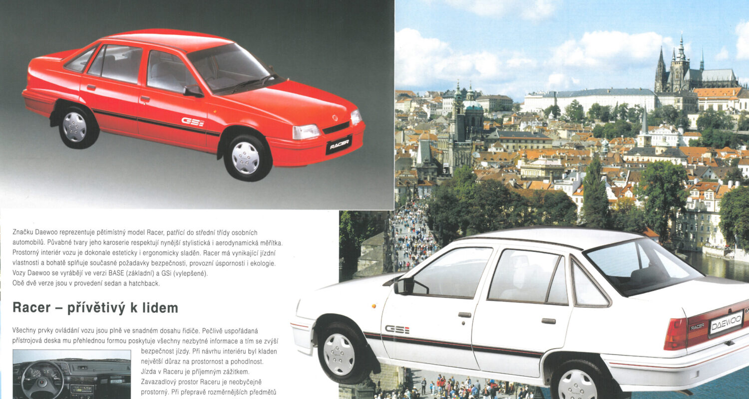 Náš sledující a přítel projektu 90s CZECH ROADS – Jiří Kaufman je velkým fanouškem značky Daewoo a sám vlastní model Nexia, který je přímým nástupcem Racera. Jirka nám zaslal tuto krásnou brožuru modelu Racer a musím dodat, že kompozice této brožury mi vykouzlila úsměv na tváři. ☺