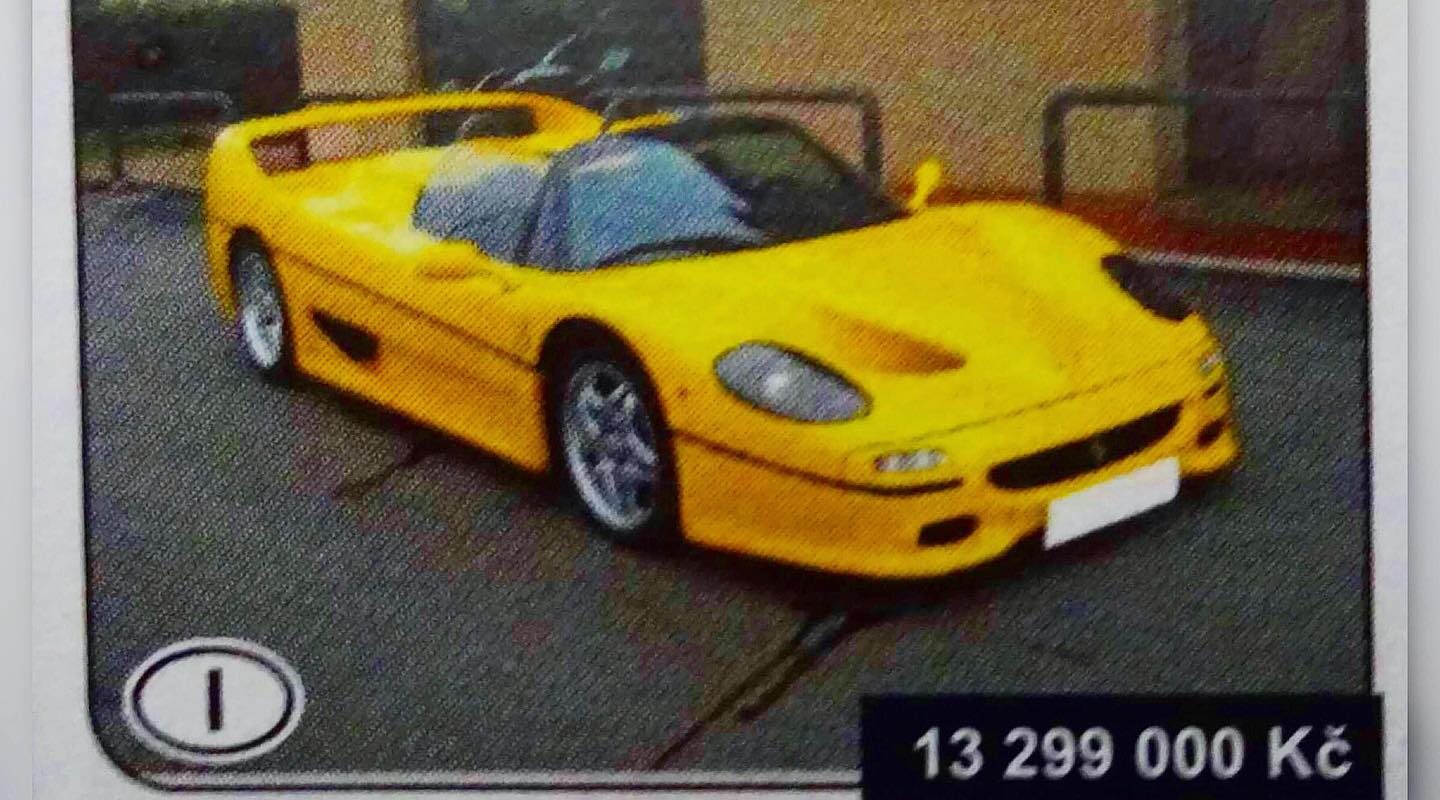 „Prodám FERRARI F50 z roku ’97, po prvním majiteli, najeto 9 tisíc kilometrů. (…) Vůz má mimo jiné otáčkoměr a manuální převodovku!“ ??