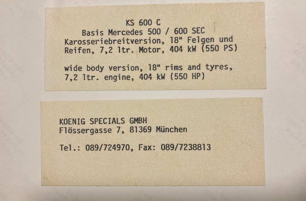 Z dealerství KOENIG-SPECIALS, raná 90. léta.[3]
