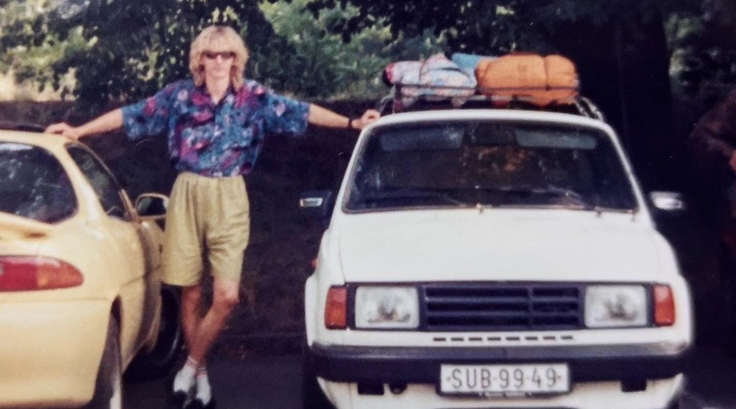 Pan Martin V. se svým prvním autem, okres Šumperk, 90. léta.