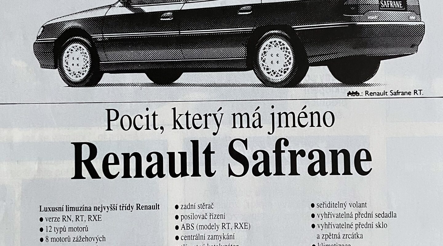 Dobová reklama na RENAULT SAFRANE, rok 1993.