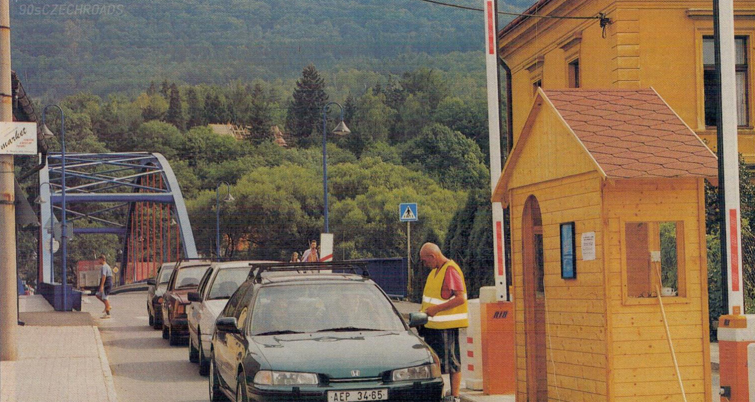 V devadesátých letech byla postavena mýtná brána v Dobřichovicích. Zde fotografie z období zavedení mýtného, léta páně 1997.