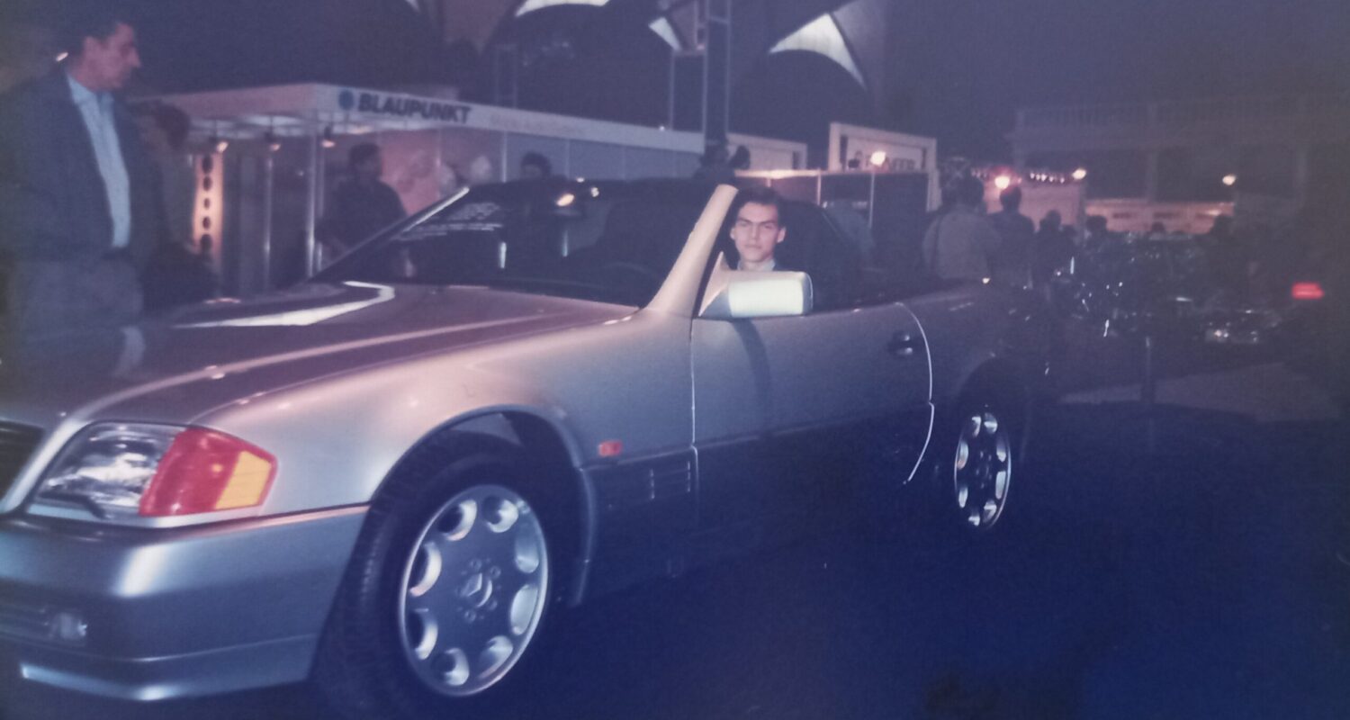 Na fotografii níže je pan Alec Balaš v tehdy novém MERCEDESu-BENZ SL 500. Fotografie byla pořízena na autosalonu Praha v roce 1991.