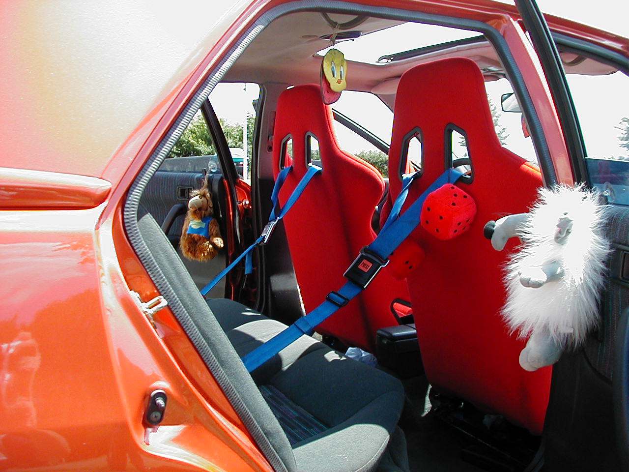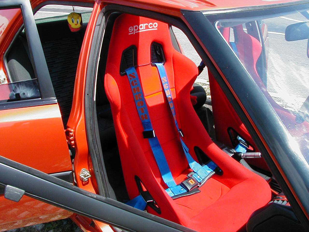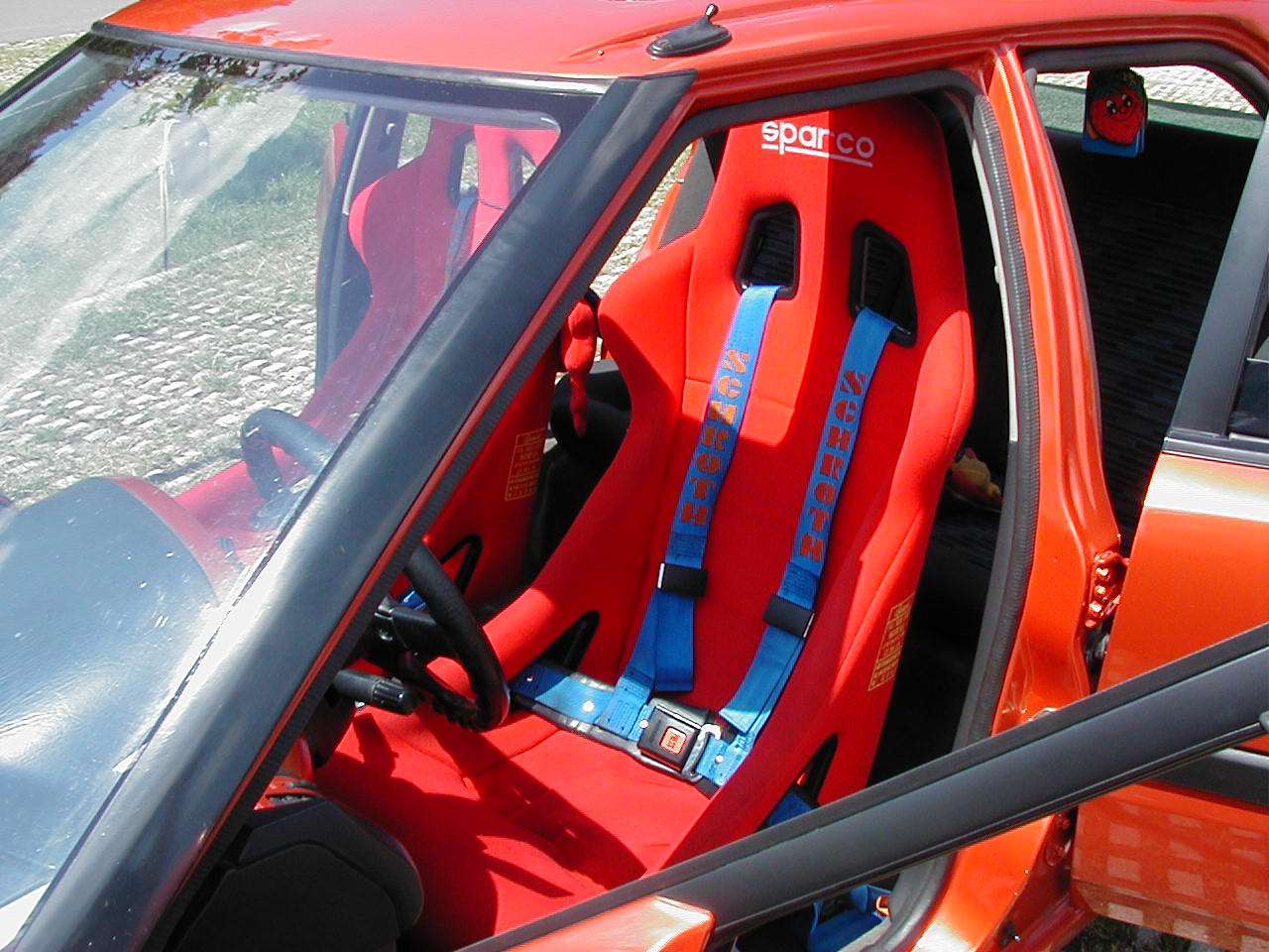 Auto bylo odstrojeno a nalakováno do oranžové metalízy z Peugeotu 206 (barva se nazývala Firedance, pozn. autora). Uvnitř byly sedačky Sparco a čtyřbodové pásy Schroth.“