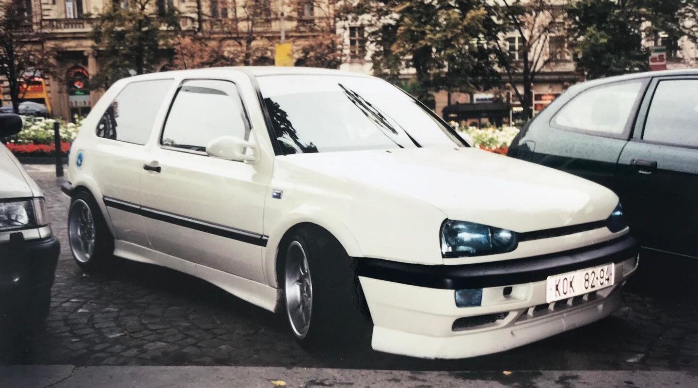 VOLKSWAGEN GOLF (3. generace), upravený ve stylu pozdních 90. let. Zde už jdou naplno vidět tuningové trendy následující dekády!
