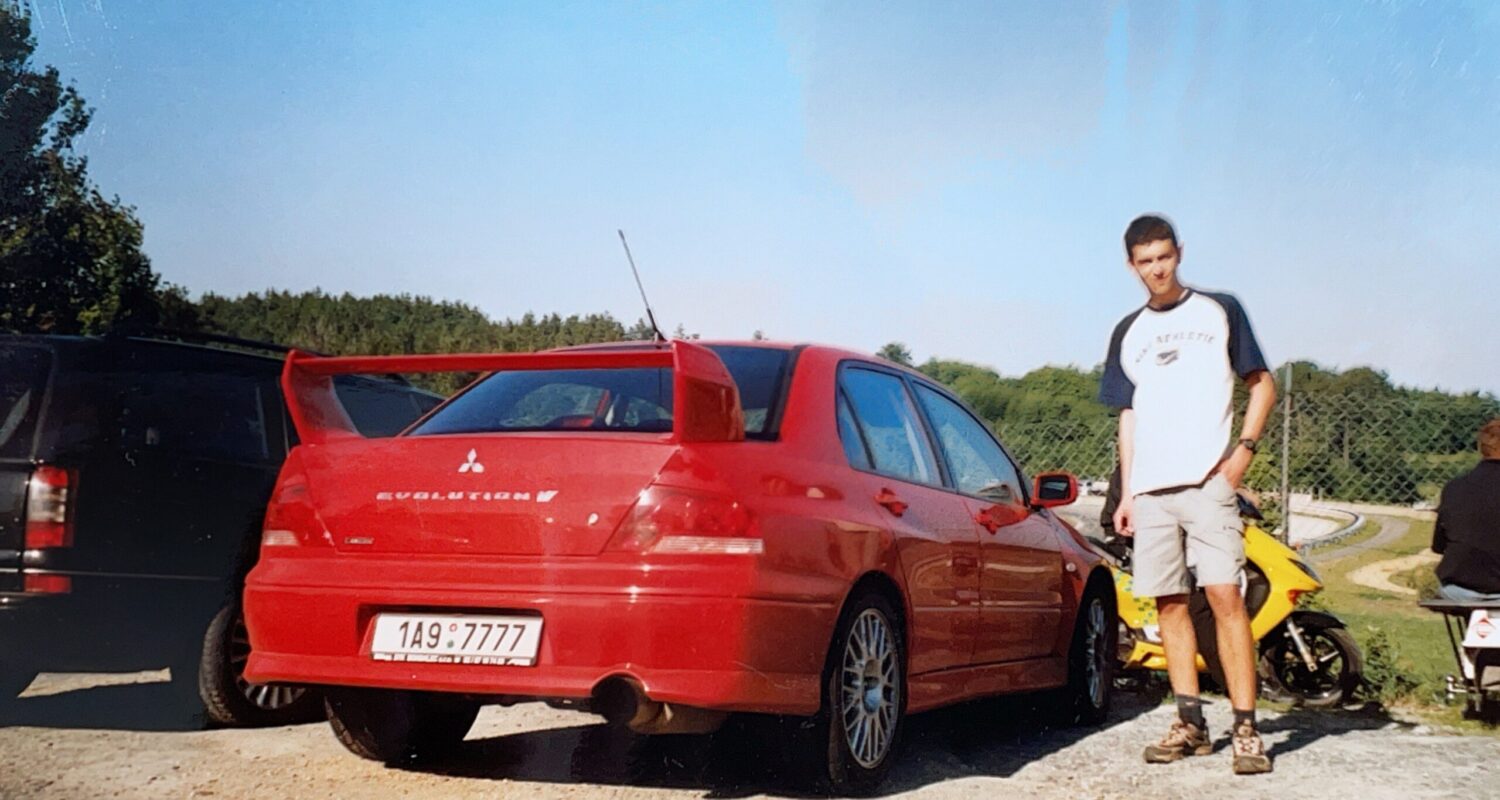 Pan Michal K. u zánovního MITSUBISHI LANCER EVOLUTION VII, rok 2003.
