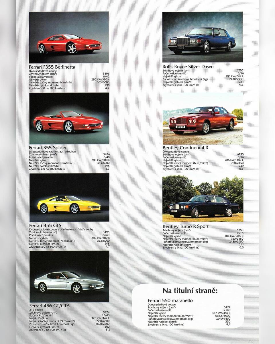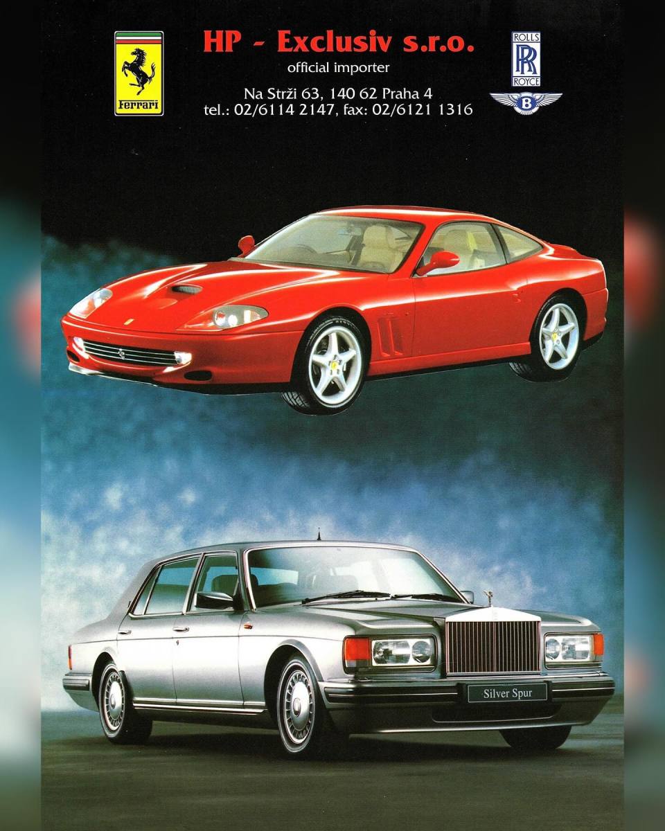 Příspěvek tvoří fotografie zdigitalizovaného a velmi raritního reklamního prospektu HP-Exclusiv z 2. poloviny 90. let a luxusní vozy, vystavené v showroomu v budově bývalého Motokovu na Pankráci (dnes City Empiria).