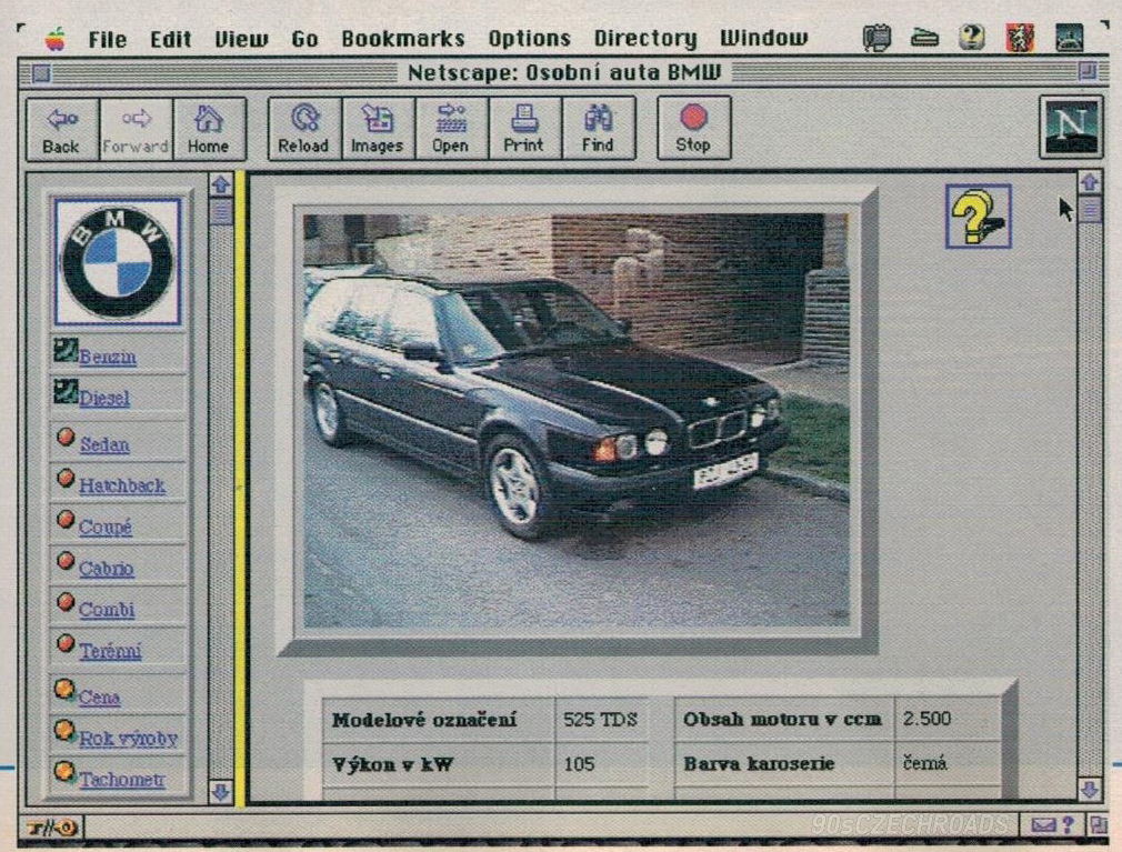 Webový prohlížeč Netscape Navigator a staré grafické rozhraní systému MacOS.