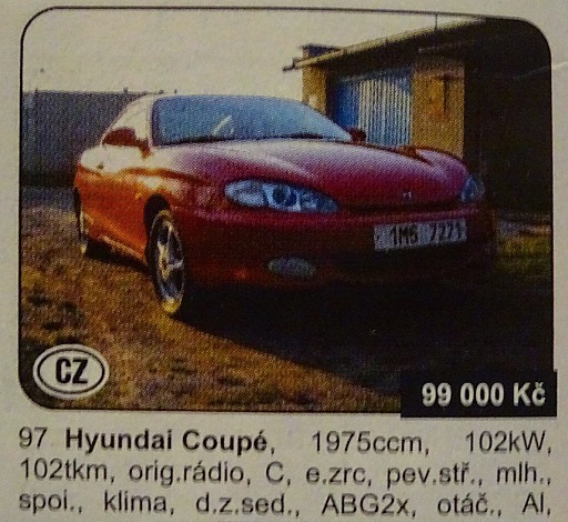 V dnešní pravidelné cestě časem se podíváme tedy do roku 2007, kdy někdo nabízel tento HYUNDAI COUPÉ (Tiburon) z roku 1997 za neuvěřitelných 99 tis. Kč… ??