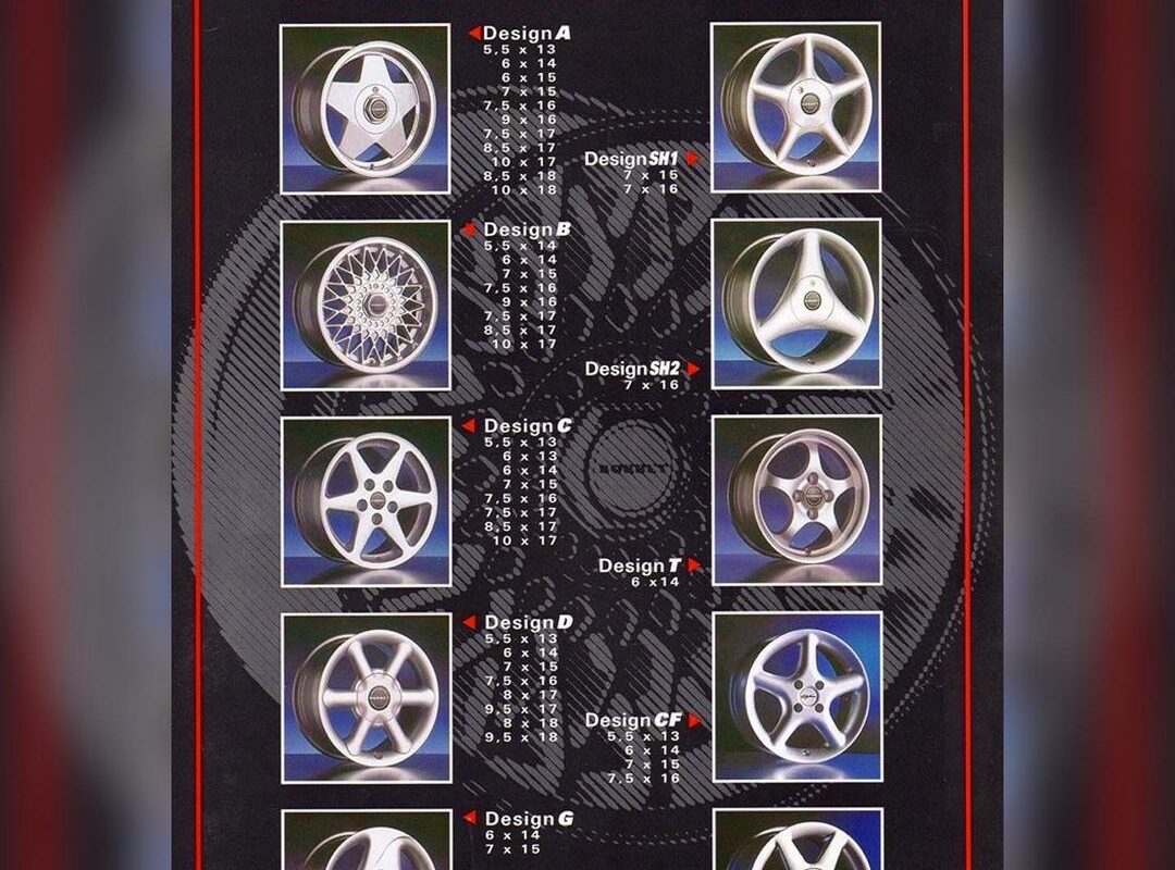 Fragment dobové reklamy na litá kola BORBET, která výhradně dovážela a prodávala firma MOTORSPORT s. r. o. Praha. Reklama z roku 1994.
