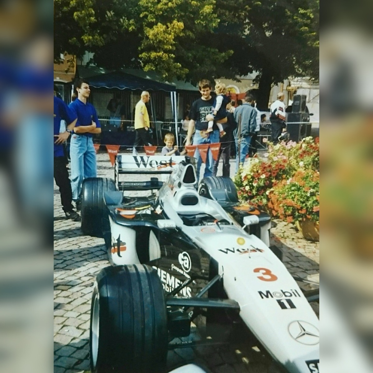 Fotografie v příspěvku vznikly na Smetanově náměstí v Litomyšli roku 2002. Na fotkách je McLaren MP4-16 s motorem 3.0 V10 od Mercedesu ze sezony 2001, kdy s ní jel Mika Häkkinen.