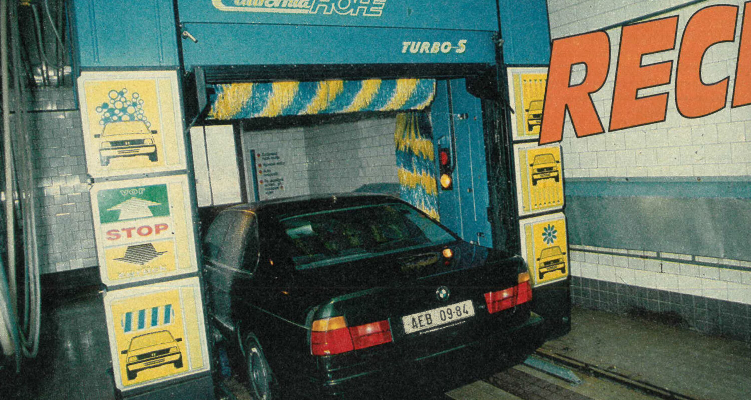 ⚫️BMW E34 v automyčce California, kterou vybavovala firma ROHÉ. Firma ROHÉ dodávala v 90. letech vybavení autoservisům, automyčkám nebo čerpacím stanicím. Na dalších snímcích jsou dobové přístroje pro autoservisy.?