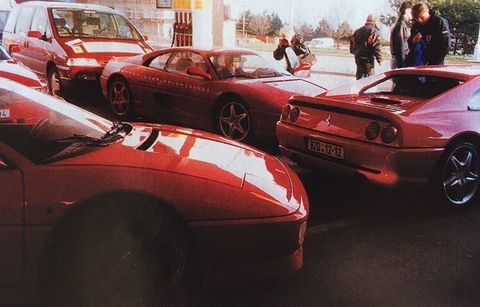 I TAKOVÉ BYLY DEVADESÁTKY V ČESKU. Fotografie byla pořízena při během cesty Ferrari F355 z Prahy do Brna. F355 s polepem projela téměř celý svět, během cesty nesměla být umyta a na své cestě vystřídala spoustu posádek.